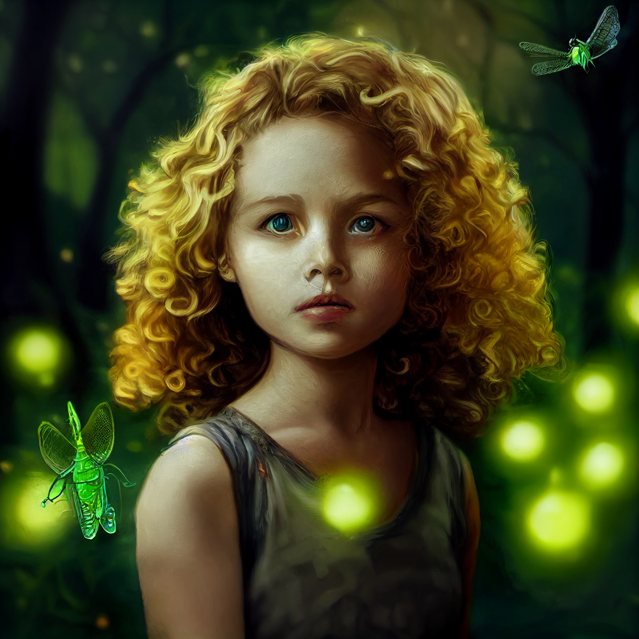 In the darkness she remembered the grasshoppers and imagined their multidimensional mirrored eyes and through them she entered her safe place, her underworld. No longer were grasshoppers required for her to escape embodiment. She was four.