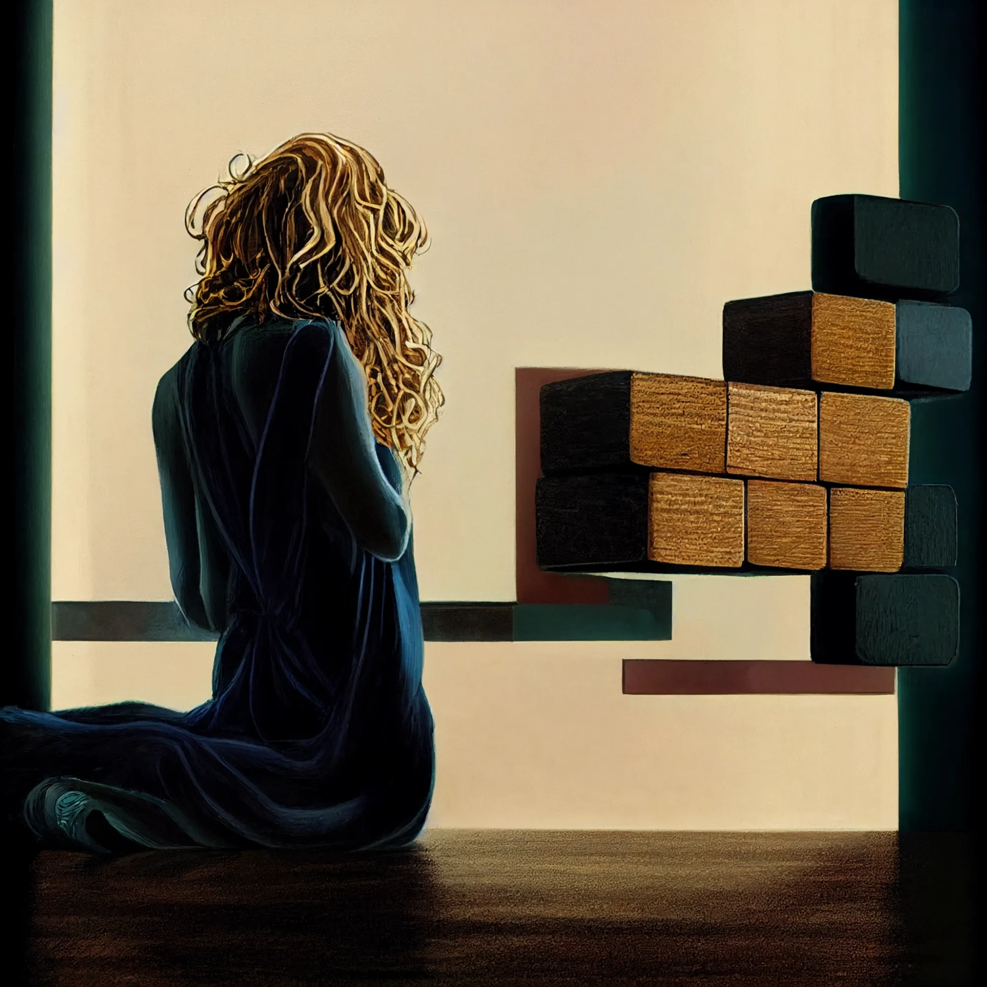 At sixteen, with the sweet warmth of alcohol she found a new, different underworld. It was wild in a dangerous untethered kind of way. Others' fingers and appendages found their way into her inner world through her body's underworld. Like Jenga blocks, shame piled up, fell apart, and were restacked. Years of consuming alcohol darkened her world until she could no longer find her way into the grasshopper's eyes.